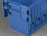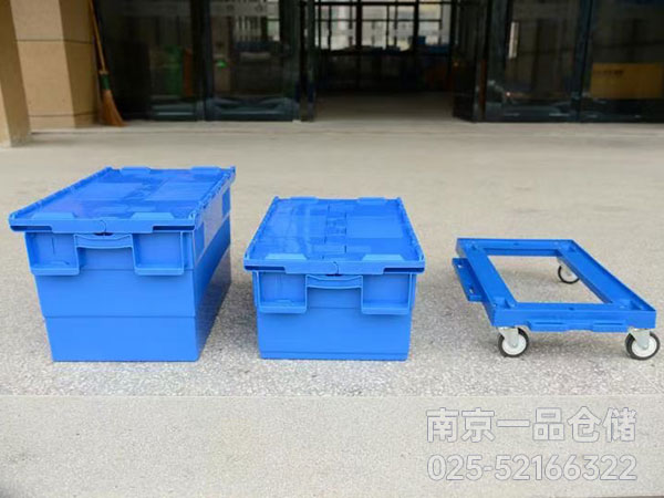 1. 物流箱為可插式、帶連體外翻箱蓋;把手搬運舒適,空箱套入時,把手在外。